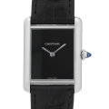 - 2022年発表のモデルタンク マストです。「マスト」とカルティエ自身が称するように、エレガントな薄型ケースに丸みを帯びたラグ、そして飽きの来ないシンプルなブラック文字盤はシーンを選ばずご着用できます。クォーツムーブメントを搭載しているため、ケース厚は6.6mmに抑えられました。日常生活防水を維持します。