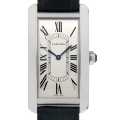 - 1930年代にカルティエのニューヨーク店が生み出したと言われているタンクアメリカン。縦に伸びたスクエアケースが特徴で、他のタンクシリーズとは一線を画す独特なデザインが人気のモデルです。シンプルなシルバー文字盤の中に配された上品なローマンインデックスが絶妙のコントラスト。 シャープな中にエレガントさも兼ね備えています。