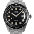 - 50年振りの復活を遂げることとなった、オリスのダイバーズウォッチ。見た目は60年代当初のデザインそのままに、中身は最先端技術の集約となった復刻版”ダイバース65”を入荷致しました。湾曲構造をとったサファイヤクリスタル風防を採用し、内側にコーディングを施すことで、当時使用されていたプレキシガラスよりも視認性が向上。蓄光塗料は当時の色合いを限りなく再現しつつも、スーパールミノバを採用しています。10気圧防水。
