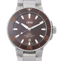 - オリスを代表するダイバーズモデル「アクイス」。300m防水を備えた堅牢なケースに自動巻きムーブメントを搭載。落ち着いたブラウンの文字盤とセラミック製ベゼルが程よく個性的で印象的なモデルです。