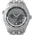 - アメリカ生まれ、スイスメイドのハミルトンロングセラー“ジャズマスター”。こちらは世界24都市を記したインナー回転ベゼルを備えた、大変人気のGMTモデルです。GMT針と都市ディスクの両方を備えているため、ホームタイムとローカルタイムだけでなく、世界24都市の時間帯を読み取ることが可能です。文字盤には北極を中心とした世界地図が描かれており、眺めるだけでも楽しい仕様です。自動巻きCal.2893-2を搭載。5気圧防水。