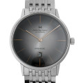 - ハミルトンにおけるクラシックモデルの代表格“イントラマティック”。時が経っても色褪せることのないアメリカンスタイルで、飽きの来ないオーソドックスなデザインが魅力のモデルです。グレーを基調としたシックでクールな雰囲気が特徴的です。ムーブメントはETAの自動巻きCal.2892を搭載。5気圧防水