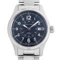 - カーキフィールドシリーズは、第二次世界大戦時に生産されていたミリタリーウオッチがモチーフとなっている人気モデルです。こちらはブルーの文字盤とホワイトのインデックスがすっきりとした印象で、どんなスタイルにも合わせやすい1本。 Cal.H-10搭載、パワーリザーブ80時間。10気圧防水。