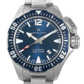- アメリカ海軍特殊潜水部隊「フロッグマン」のために設計され、不朽の名作映画『フロッグメン』でも劇中で使用された歴史を持つカーキネイビー。ハミルトンのダイバーズウォッチの金字塔であり、プロユースに耐えうるハイスペックウォッチでもあります。こちらは美しき大海原を思わせるネイビーが美しい一本となります。30気圧防水と、堅牢性も十二分です。ムーブメントはH-10搭載、パワーリザーブ約80時間。