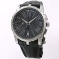 - このクロノグラフは頑丈で確かな外観に加えて大胆な感覚が演出されており、それが他とは異なる特徴となっています。緊張感のあるラインのデザインが男性的でスポーティーな外観を引き立てています。各種機能は非常に読み取りやすくなっており、メインダイヤルとクロノグラフのサブダイヤル(3時位置の30分積算計と9時位置のスモールセコンド)、そして植字されたローマンインデックスが、ブルーとホワイトの見事な調和を生み出しています。日付は6時位置の小窓に表示され、他の表示との均整がとれた配置になっています 。