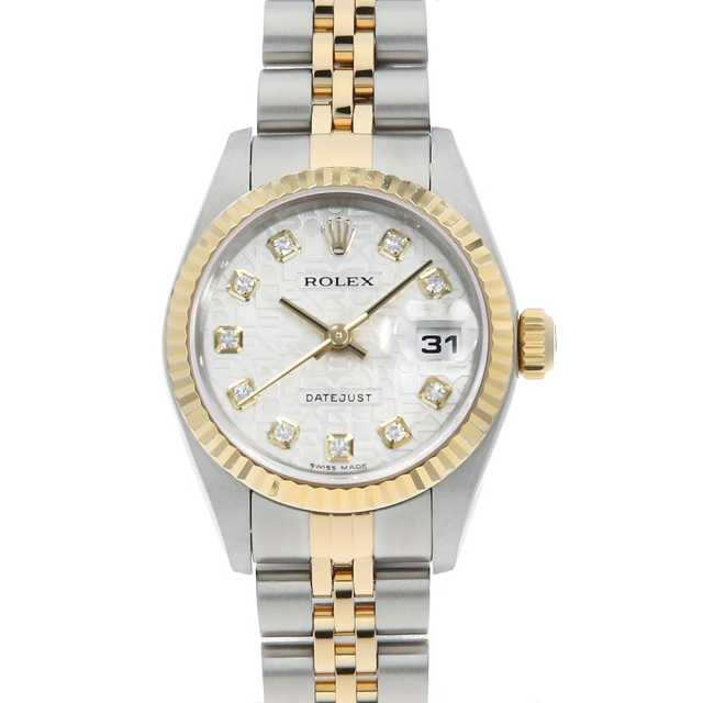 ロレックス デイトジャスト 10Pダイヤ 79173NG ホワイトシェル K番 中古 レディース