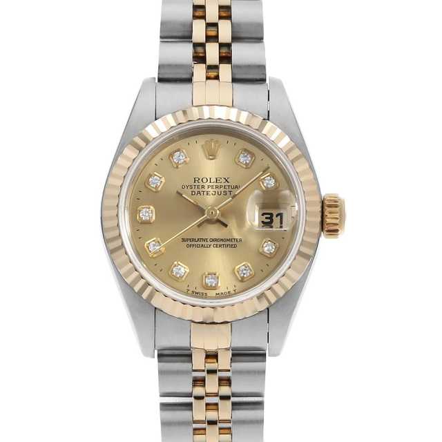 ロレックス デイトジャスト 10Pダイヤ 69173G シャンパン W番 中古 レディース