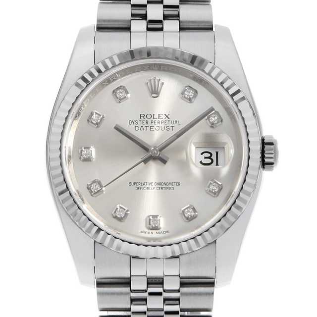 ロレックス デイトジャスト 10Pダイヤ 16233G シルバー 彫りコンピューター U番 中古 メンズ