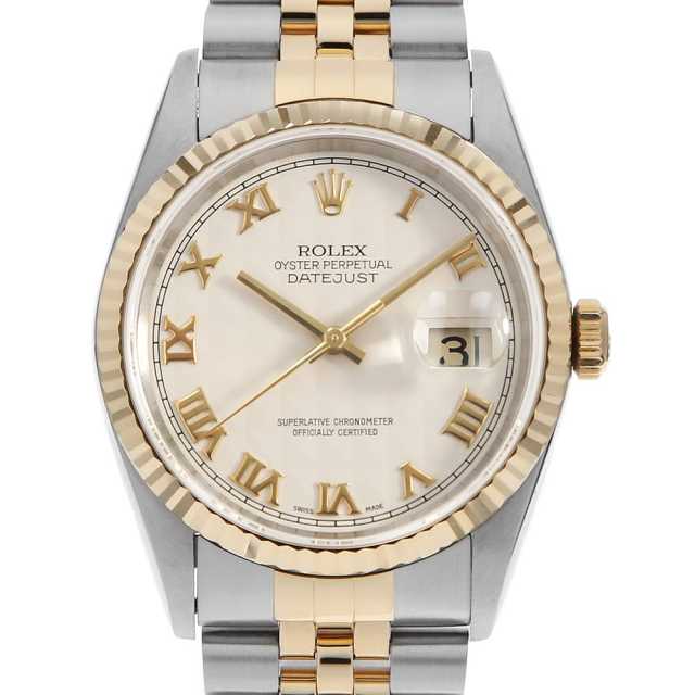 ロレックス デイトジャスト 16200 ホワイト ローマ 3列 オイスターブレス A番 中古 メンズ