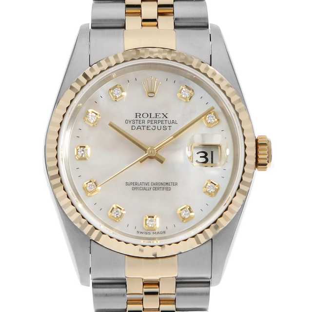 ロレックス デイトジャスト 10Pダイヤ 16234NG ホワイト F番 中古 メンズ