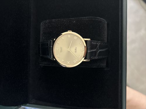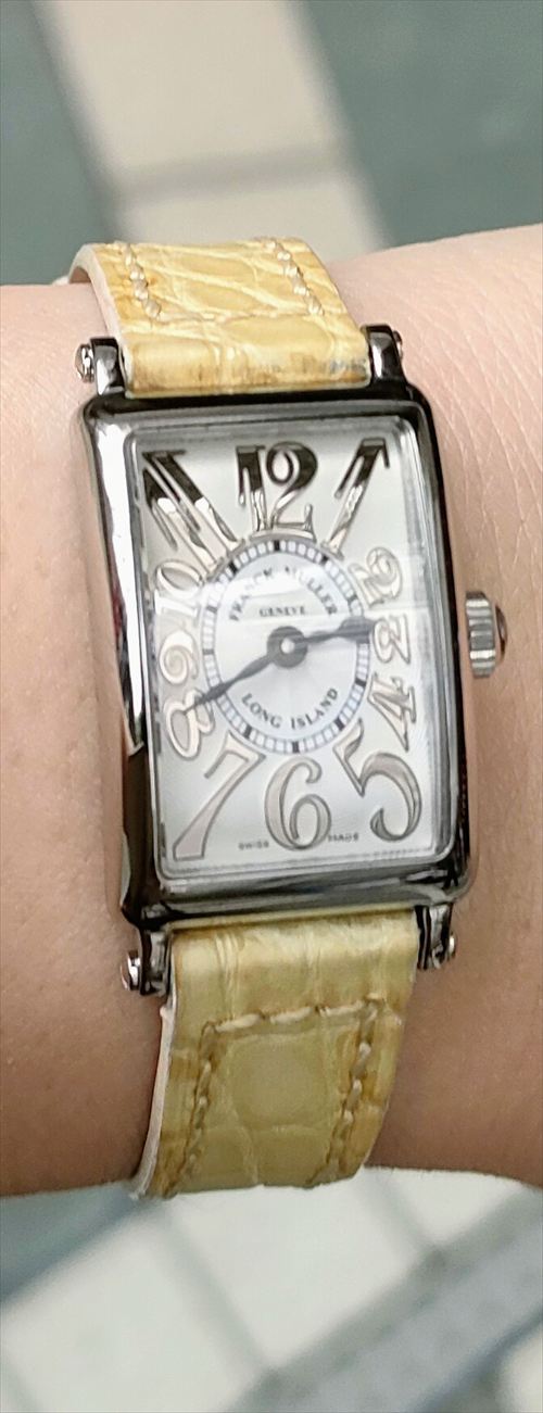 フランクミュラーには、全く興味が無かったものの、今年の自分のラッキーカラーを中心に腕時計を探していました。偶然見かけて普段使いがしやすそうだったので記憶に残り、、、。繰り返し見ているうちにフランクミュラーの数字表記が魅力的に思えてきた不思議。購入後に実際に手元に着けてみるとロングアイランドは文字盤自体がカーブしており、とても繊細で可愛い腕時計でした。ラッキーカラーのご利益で毎日ラッキーとハッピーが舞い込みますように????銀座ラシンさんでの購入後、手続きの案内も梱包も発送も丁寧かつスピーディーで安心出来ました。この度は可愛い時計との御縁を有難う御座いました。オーバーホール時にはまた宜しくお願い致します。