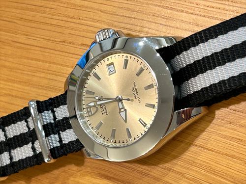 1990-2000年前後の時計が好みで、チュードルと呼ばれていた時のプリンスデイトを見つけて、これはなかなか手に入らないと思い、購入に至りました。チューダーのTがさりげなく文字盤の外周に施されていて、シャンパンゴールドがとても綺麗な品物でした。この個体もさすがラシンさんできちんと整備されており、とてもきれいな状態で、安心して購入できました。また、通販で初めて買いましたが、梱包がとても丁寧でとてもよかったです。純正のベルトとバックルがついてましたが、昨今の暑さから汗で劣化しないよう取り急ぎNATOベルトに変えて使用しています。NATOベルトとの相性も抜群でとても気に入っております。銀座店にはよく伺っていますが、またよろしくお願いいたします。